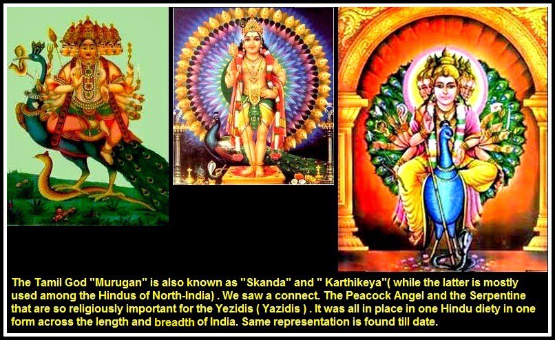 1. The Peacock (Malak Ta'us) whom they worship is only found in India, and is known as the Peacock Angel of Lord Subrahmanya (son of Lord Shiva and Parvati)